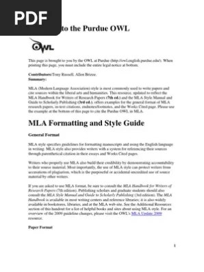 Purdue Owls Mla - Purdue Owl Mla Formatting Full Resource